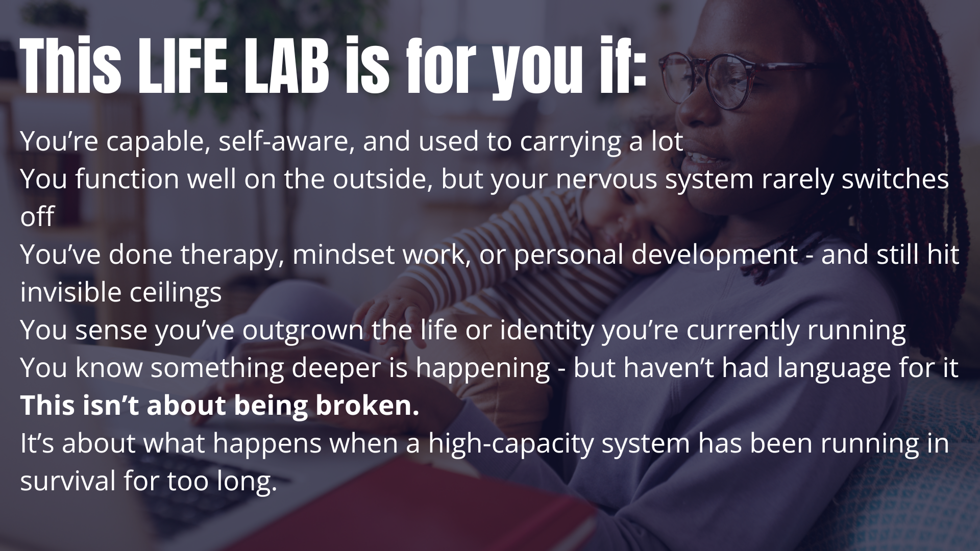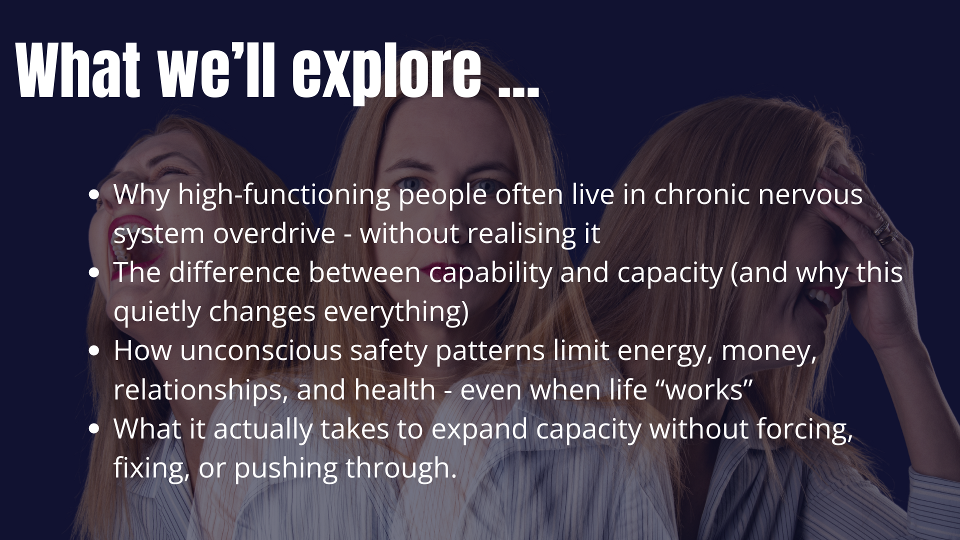 A 60-minute live session for people whose lives look “fine” - but feel fried, stretched, or constantly on edge.